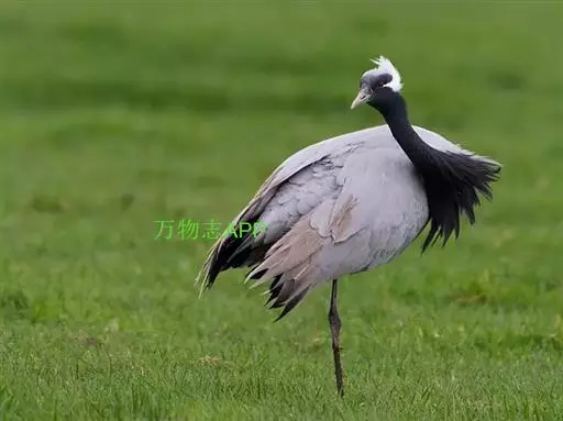 蓑羽鹤大型涉禽,体长68~92厘米,是鹤类中个体最小者。通体蓝灰色,眼先、头侧、喉和前颈黑色,…