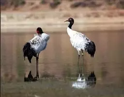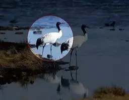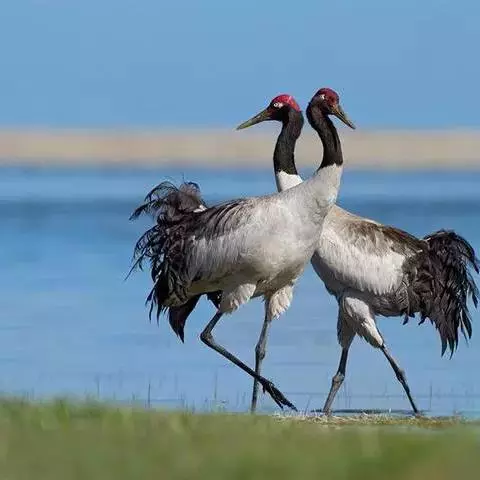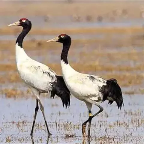 黑颈鹤:是鹤科、鹤属的大型涉禽,体长110-120厘米,体重4-6千克。颈、脚甚长,通体羽毛灰白色,…