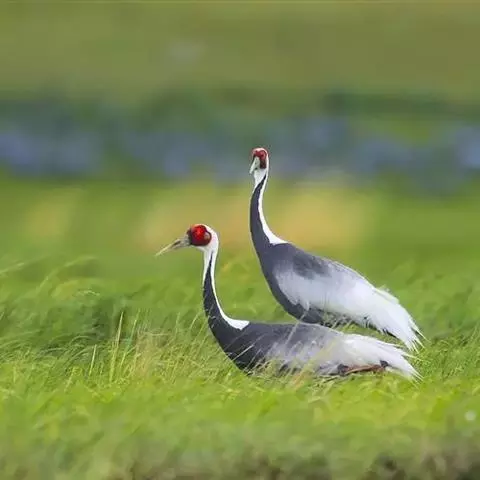 丹顶鹤:是鹤科、鹤属的一种大型涉禽,体长120-160厘米。颈、脚较长,通体大多白色,头顶鲜红色,…