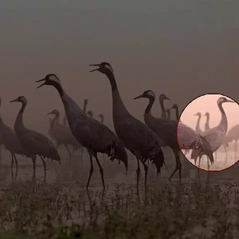《宋书·五行志》载:“雍熙四年(公元987年)十月,知润州程文庆献鹤,颈毛如垂缨。”是蓑羽鹤在历史上的唯一记载。