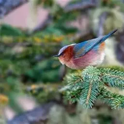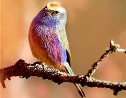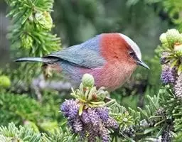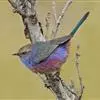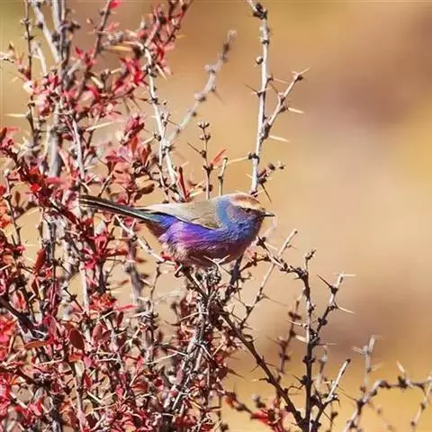 凤头雀莺:小型鸟类。体长9-10厘米,雄鸟呈毛茸茸的紫色和绛紫色,顶冠淡紫灰色,额及凤头白色,尾全蓝。…