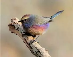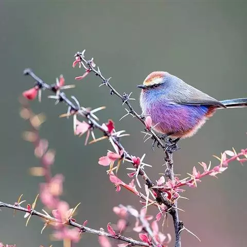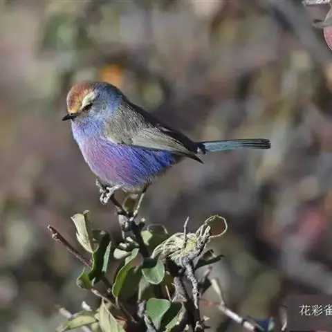 花彩雀莺:体长9-12厘米,是一种毛茸茸偏紫色的雀莺。顶冠棕色,眉纹白。尾长,羽毛松软。…