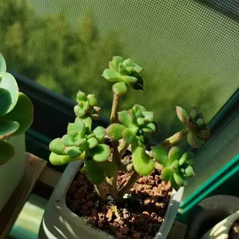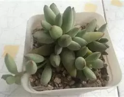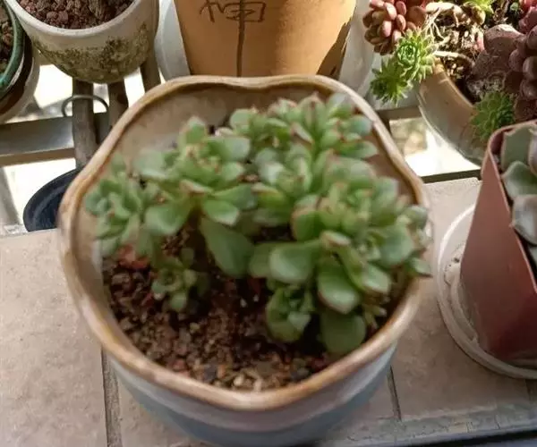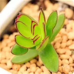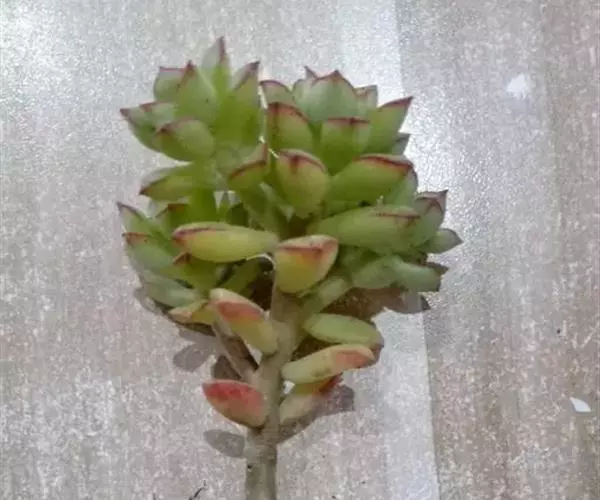 酥皮鸭是一种植株为直立的肉质灌木,能够长高。叶盘莲座状,叶片呈卵型,叶片光滑绿色,叶片顶端和叶缘发红,有叶尖,叶背有一条棱,会发红。强光下叶片的顶端和边缘也会发红。