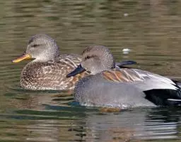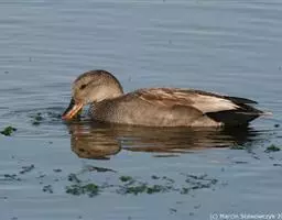 赤膀鸭,是雁形目鸭科鸭属中型游禽。雄鸟嘴黑色,脚橙黄色。头侧及头上部浅白色,满杂以褐色斑点,…