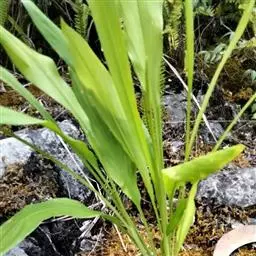 一叶兰 多年生常绿草本。根状茎近圆柱形,直径5~10毫米,具节和鳞片。叶单生,彼此相距1~3厘米, 矩圆状披针形、披针形至近椭圆形,长22~46厘米,宽8~10厘米,先端渐尖,基部楔形,边缘多少皱波状,两面绿色,有时稍具黄白色斑点或条纹;叶柄明显,粗壮,长5~35厘米。