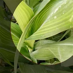 别名金纹蜘蛛抱蛋、白纹蜘蛛抱蛋。为一叶兰的栽培品种。绿色叶面上有淡黄色纵向线条纹。