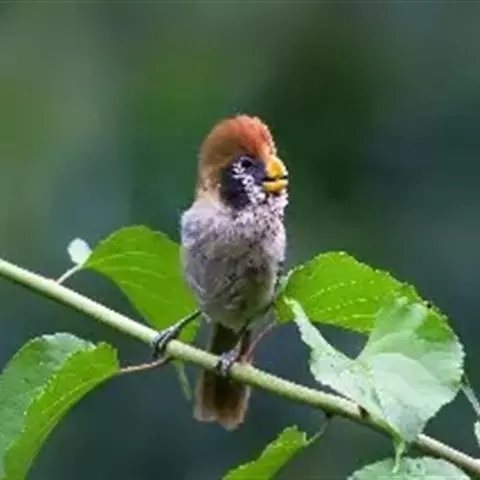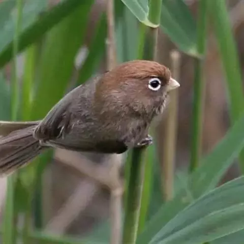 白眶鸦雀是莺科、鸦雀属小型鸟类,体长12-14厘米。嘴黄色、短而粗厚,头顶至后颈褐色沾棕具白色眼圈,…