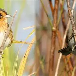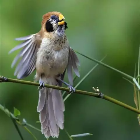文须雀,别称髭雀、文须山雀,属雀形目、鹆鸟科、画眉亚科。眼先及髭纹黑色,头顶暗灰,…
