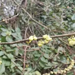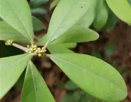 杨叶木姜子(学名:)是樟科,木姜子属落叶小乔木,高可达5米;小枝绿色,叶互生,常聚生于枝梢,圆形至宽倒卵形,纸质,羽状脉,伞形花序常生于枝梢,总花梗被黄色柔毛;花梗细长,花被裂片卵形或宽卵形,黄色;花丝无毛,果球形,花期4-5月,果期8-9月。