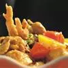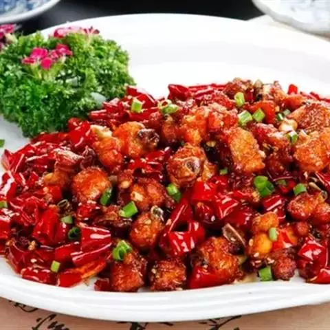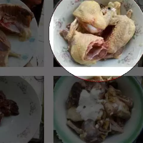 2、 将鸡洗净切成块,装入煎盘中放进微波炉3分钟,取出加入盐、料酒、鸡精、水再放进炉中15分钟即可。