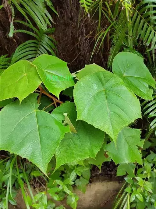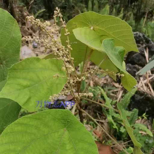 绒毛野桐,别名黄白尼泊尔野桐《云南种子植物名录》。小乔木。幼枝、叶柄及花序轴密被褐色绒毛。叶互生;叶柄长3-lOcm;叶片宽卵形或菱形,长l0-20cm,宽6-15cm,先端渐尖,基部钝圆形或宽楔形,不分裂或先端3浅裂,全缘,幼叶被毛并略显红色,老叶上面无毛,下面密被淡黄褐色星状柔毛,并散生黄色腺点。花单性异株,为顶生总状花序;雄花序通常分枝呈圆锥状,长8-20cm;雌花序不分枝,较雄花序稍粗短;雄花疏生,花萼3裂,雄蕊多数;雌花密生,子房3室,偶有2-4室,密被星状毛,花柱3,偶有2或4。蒴果球形,直径约lcm,密被星状毛并有软刺,散生黄色腺点;种子球形,黑色。花期6-8月,果期7-10月。