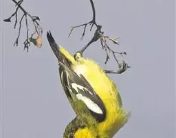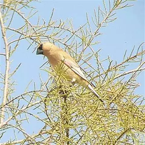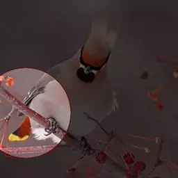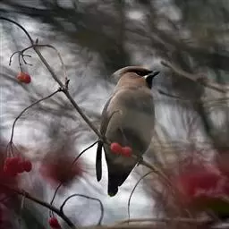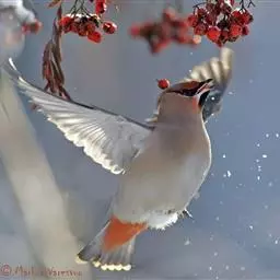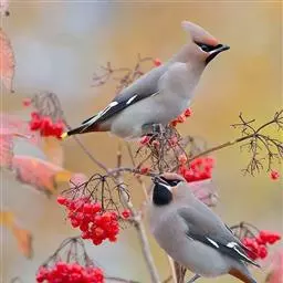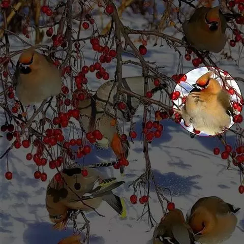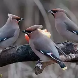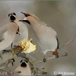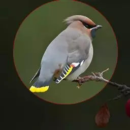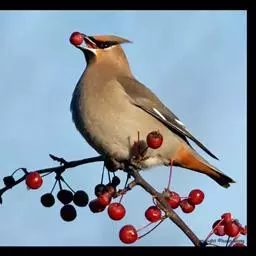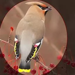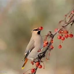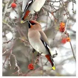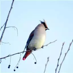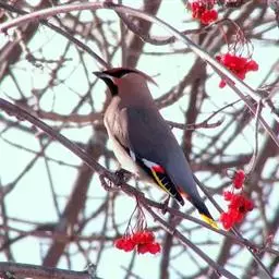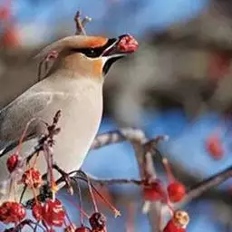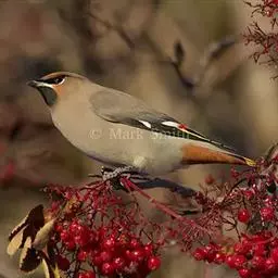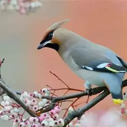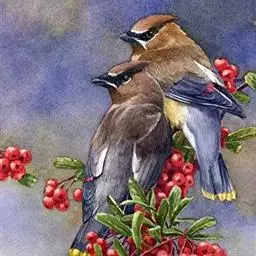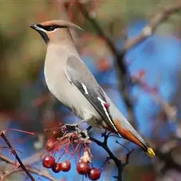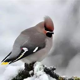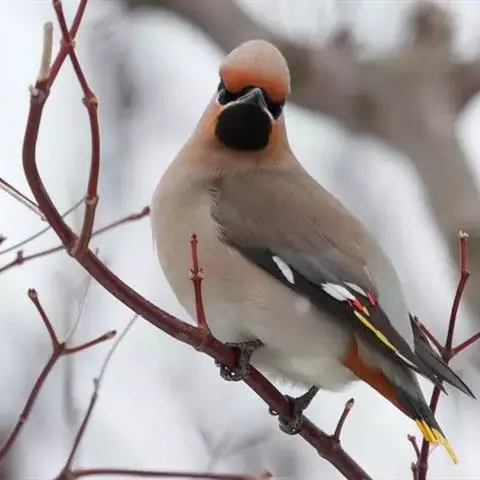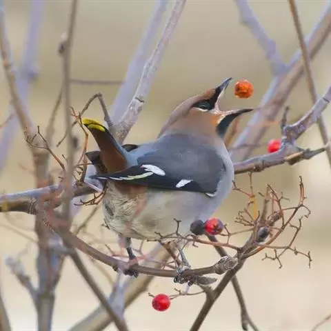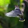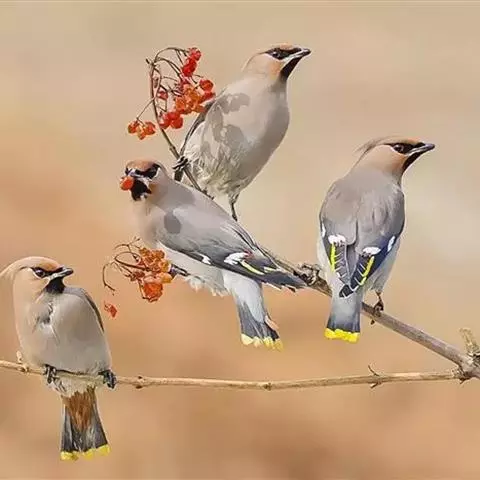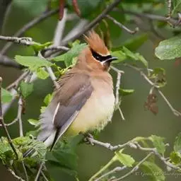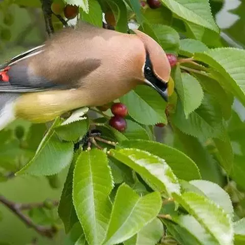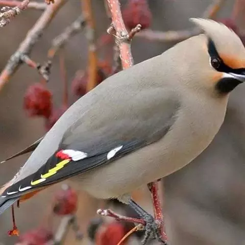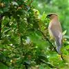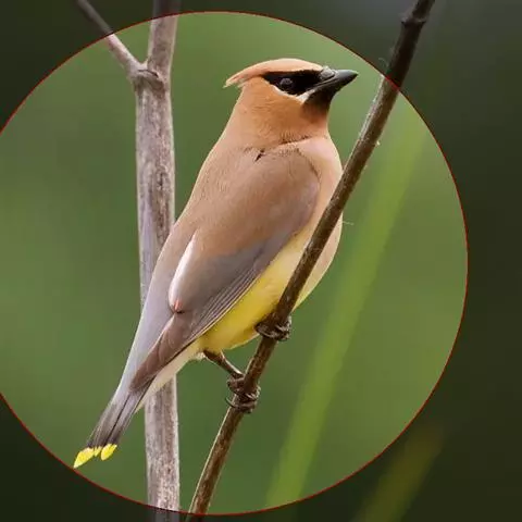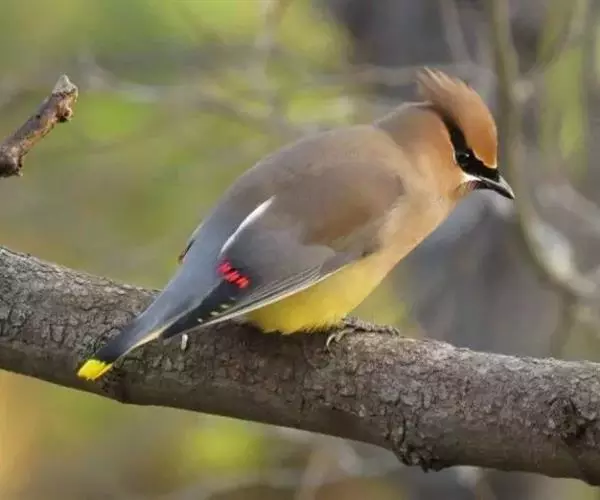 雪松太平鸟体形(学名Bombycilla cedrorum:)中等大小,体长约在19厘米左右。该物种雄雌同形同色,太平鸟成鸟额部及面部前端为栗色,向头后部颜色逐渐变浅;额基部、眼先、眼周及眼后部有黑色纹带,颌部亦有黑色区域;枕部黑色,与贯眼的黑色区域相链接,形成环绕头部的黑环;头顶具细长的簇状羽冠,这条羽冠常常覆盖在枕部的黑色羽区上,让人无法看到环绕头部的黑环;体羽松软,头部有一簇柔软的冠羽,嘴短,略呈钩状。喜群居,无领域性,多树栖,以松籽、浆果、昆虫为食。在美洲广泛分布。雪松太平鸟亚成鸟眼后和头枕部没有黑羽,前胸及腹部有明显的褐色带状纹。