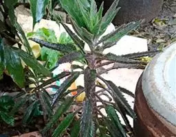 棒叶落地生根是景天科、落地生根属植物。茎直立、粉褐色。叶圆棒形,上表面有沟、粉色,有红褐斑。…