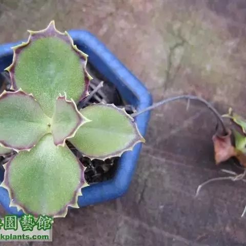 红缘莲花掌属蔷薇目、景天科植物,原产大西洋的加那利群岛。质厚,蓝绿色,被白霜,叶缘红褐色。聚伞花序,…