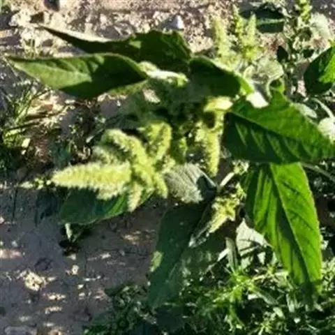 反枝苋是苋科苋属的一年生草本植物。株高达1米;茎密被柔毛;叶菱状卵形或椭圆状卵形,先端锐尖或尖凹,…