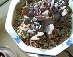 大和锦是景天科拟石莲花属的多肉植物。肉质叶排成紧密的莲座状,广卵形至散三角卵形,背面突起呈龙骨状,…