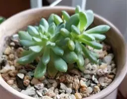 蓝黛莲是一种景天科厚叶草属植物。叶片呈略扁的圆柱形,排列成莲座状;颜色为灰绿色,…