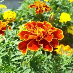 万寿菊是菊科万寿菊属一年生草本植物,别名孔雀菊、缎子花、臭菊花、西番菊、红黄草、小万寿菊、臭芙蓉、孔雀草。万寿菊茎近基部分枝。叶羽状分裂,长5-10厘米,宽4-8厘米,裂片长椭圆形或披针形,具锐齿,上部叶裂片齿端有长细芒,叶缘有少数腺体。头状花序单生,径5-8厘米,花序梗顶端棍棒状。总苞长1.8-2厘米,径1-1.5厘米,杯状,顶端具尖齿。舌状花黄或暗橙黄色,长2.9厘米,舌片倒卵形,长1.4厘米,基部成长爪,先端微弯缺。管状花花冠黄色,长约9毫米,冠檐5齿裂。瘦果线形,被微毛;冠毛有1-2长芒和2-3短而钝鳞片。花期7-9月。万寿菊中国各地均有栽培,在广东和云南南部、东南部已归化,国外原产墨西哥。万寿菊对土壤要求不严,但以肥沃疏松排水良好的土壤为好。耐移栽,种子发芽适温21-24℃,植株生长适合温度为20-29℃。喜温暖和阳光充足的环境,不