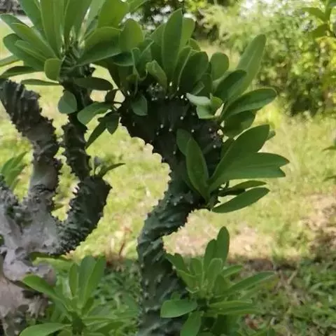 小乔木,高2~6米,直径10~25厘米,老时呈灰色或淡灰色,幼时绿色,上部平展或分枝;小枝肉质光棍…