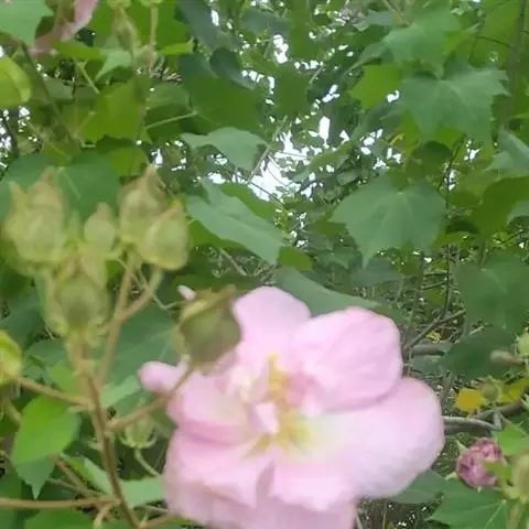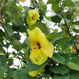 海滨木槿是锦葵科木槿属植物,落叶小乔木,株高3-5米,胸径20厘米,扁球形树冠,枝叶繁盛。…