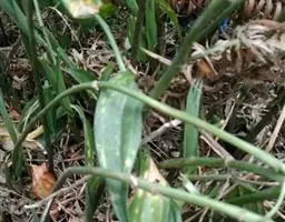 多年生草本,植株基部常生有许多膜质的鞘状叶。根状茎斜伸,上部包以棕褐色的老叶残留纤维;须根黄色,有横纹。叶基生,条形,长30-50厘米,宽2-4毫米,顶端长渐尖,基部鞘状,叶鞘内有银白色的金属光泽,表面绿色,靠近基部略带红紫色,有1-3条纵脉。