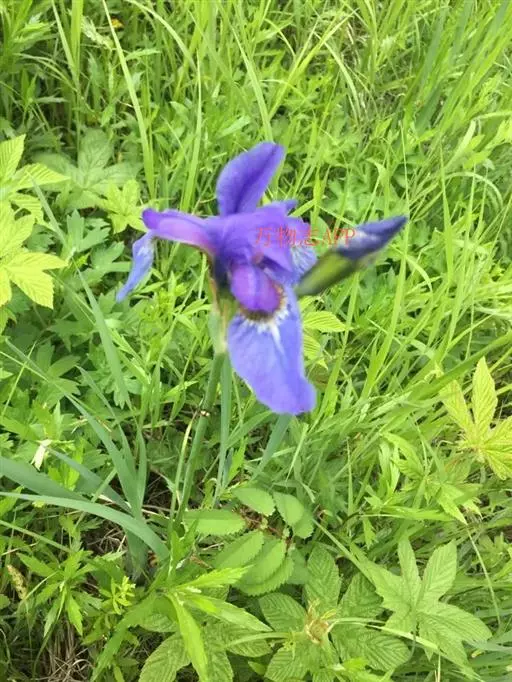 Iris sanguinea (学名:Iris sanguinea Donn ex Horn.):多年生草本。根状茎粗壮,斜伸,须根绳索状,灰白色,有皱缩的横纹。叶条形,中脉不明显。花茎光滑,实心,具1-2枚茎生叶;苞片3枚,膜质,绿色,披针形,内包含有2朵花;花天蓝色,直径6-7厘米;外花被裂片倒卵形,基部有黑褐色的网纹及黄色的斑纹,爪部楔形,内花被裂片直立,狭倒卵形。果实长卵状圆柱形,有6条明显的肋,成熟时自顶端向下开裂至1/3处。花期5-6月,果期7-9月。
