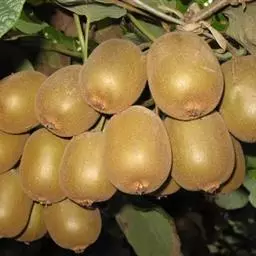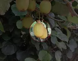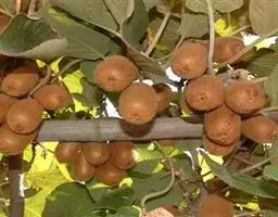 黄金果猕猴桃 黄金果是猕猴桃品种之一,原产地新西兰,因成熟后果肉为黄色而得名。黄金果为二倍体,果实为长卵圆形,果喙端尖、具喙,果实中等大小,单果重80~140g,若使用生物促进剂BenifitPZ,大果比例增加。软熟果肉黄色至金黄色,味甜具芳香,肉质细嫩,风味浓郁,可溶性固形物含量15%~19%,干物质含量17%~20%,果实硬度1.2~1.4kg/cm。