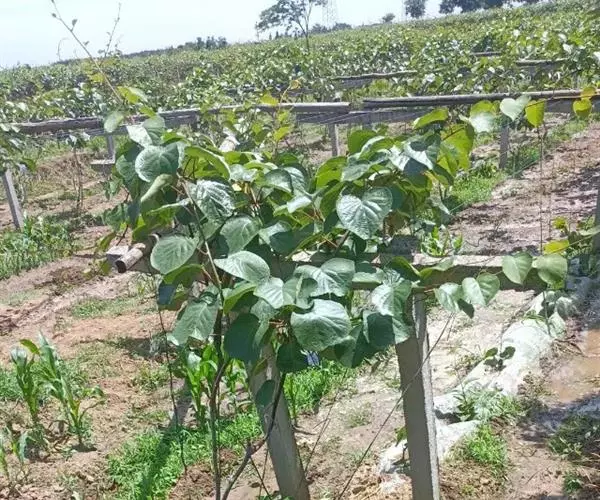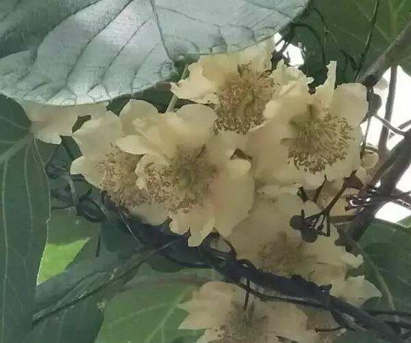 猕猴桃为雌雄异株的大型落叶木质藤本植物。雄株多毛叶小,雄株花也较早出现于雌花;雌株少毛或无毛,花叶均大于雄株。花期为5—6月,果熟期为8—10月。