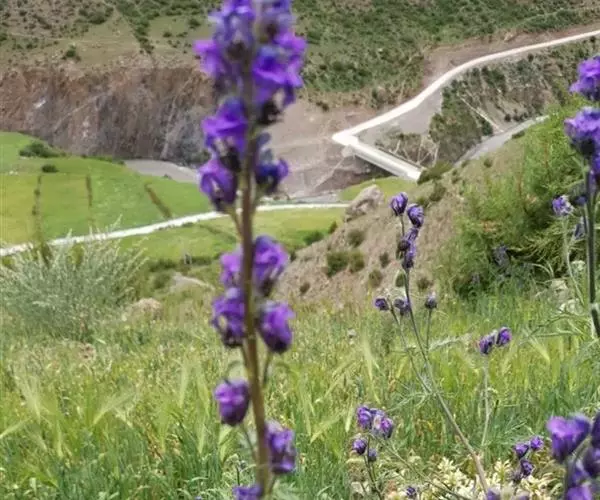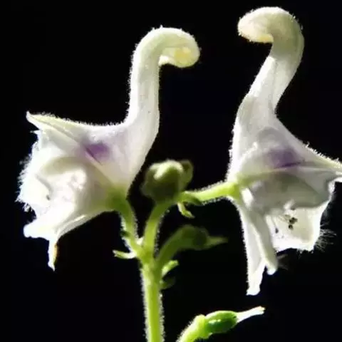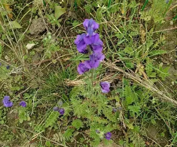 总状花序有6-16花;基部苞片似叶,其他下部苞片三裂,中部以上苞片披针形至线形;花梗长1-5(-9)厘米;小苞片生花梗上部或顶部,叶状至线形,长0.5-1.5厘米;萼片蓝紫色,少有白色,外面疏被柔毛,有较长爪,上萼片船形,高约1.8厘米,爪长约1.4厘米,侧萼片长1.5-1.8厘米,瓣片与爪近等长;花瓣的瓣片宽6-8毫米,疏被缘毛,距短,头状,疏被短毛;花丝疏被短毛;心皮6-13,子房有柔毛。蓇葖长0.8-1.2厘米;种子倒卵球形,长约1.5毫米,密生横狭翅。6-8月开花。 [1-2]