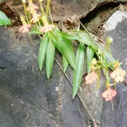 喉红石斛:附生。茎丛生,直立,粗短,近棒状纺锤体。叶2-4枚,生于茎顶。总状花序顶生,花序轴长5-…
