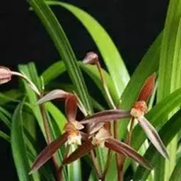 建兰 Sw.):地生植物;假鳞茎卵球形,包藏于叶基之内。叶2-6枚,带形,有光泽,长30-60厘米,…