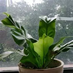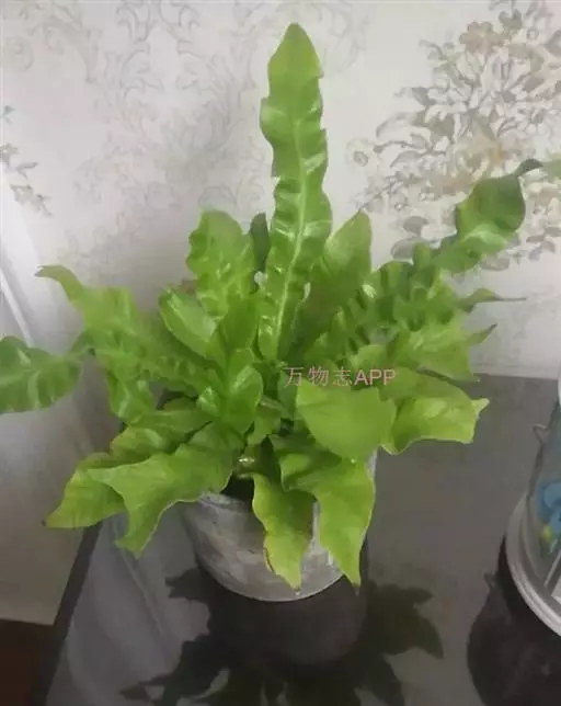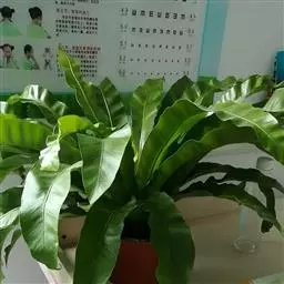 3、水分:盆栽鸟巢蕨不仅要求盆土湿润,而且要求有较高的相对空气湿度。生长季节浇水要充分,特别是夏季,除栽培基质要经常浇透水外,还必须每天淋洗叶面2次至3次,同时给周边地面洒水增湿,维持局部环境有较高的空气湿度,既可增加叶面的光泽,又对孢子叶的萌发十分有利,如果盆土缺水或空气比较干燥,易引起叶缘干枯蜷曲。冬季气温较低时,以保持盆土湿润为好,可多喷水,少浇水,以免在低温条件下因盆土中水分过多而造成植株烂根。由于其叶片为革质,能阻止水分的蒸发,所以它也能耐短时间 的干燥环境,也正因为如此,它比较适于作室内栽培陈列。