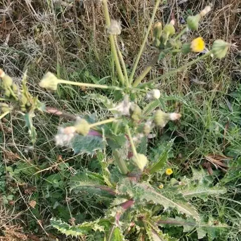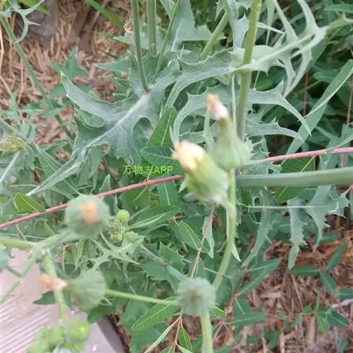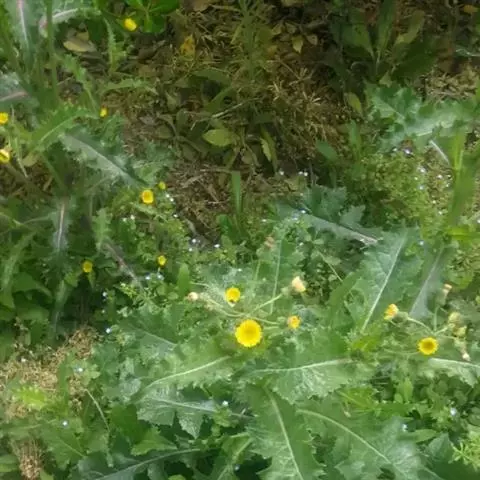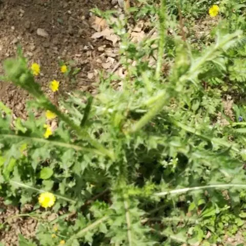 苦苣菜,学名:Sonchus oleraceus L.,是桔梗目、菊科、苦苣菜属一二年生草本植物。苦苣叶披针形。头状花序。种子短柱状,灰白色,千粒重1.6g。种子发芽力可保持10年,生产中多采用保存1-3年的种子播种。苦苣高 50 ~ 100 cm ,全草有白色乳汁。茎直立,单一或上部有分枝,中空,无毛或中上部有稀疏腺毛。叶片柔软,无毛,椭圆状披针形,长 15 ~ 20 cm 宽3 ~ 8 cm ,羽状深裂,大头羽状全裂或羽状半裂,顶裂片大或与侧裂片等大,边缘有不整齐的短刺状尖齿,下部的叶柄有翅,柄基扩大抱茎,中上部叶无柄,基部宽大呈戟状耳形。