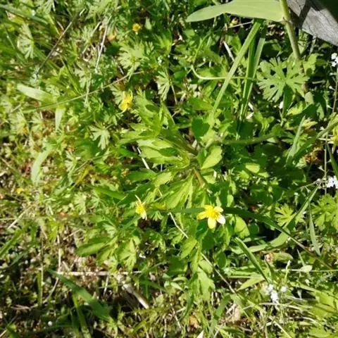 2、白山毛茛(变种):与毛茛的区别:植株较纤细矮小,叶裂片较窄,茎生叶少数,裂片呈线状披针形,贴生粗毛;花部也较小。产吉林长白山。生海拔2400米左右的高山潮湿草原。