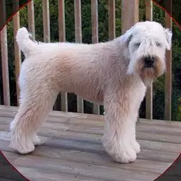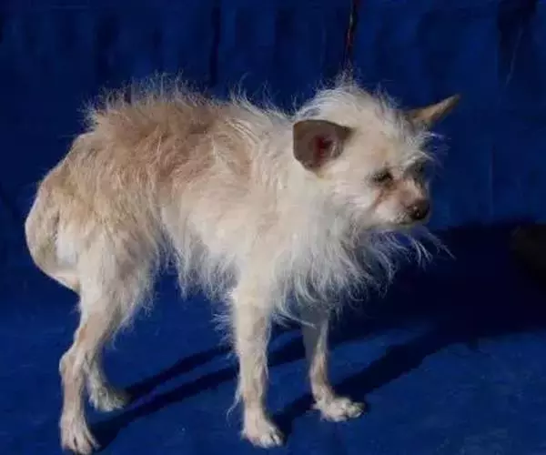 7被毛——开放式的被毛,不整洁的、过短的或死毛,底层绒毛不足,头部覆盖的被毛不足,腿上缺少硬毛。光亮而卷曲的被毛。轻微显波浪状的可接受。