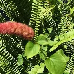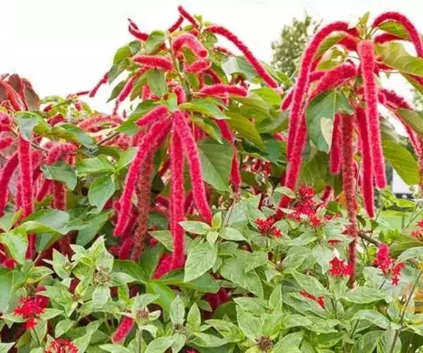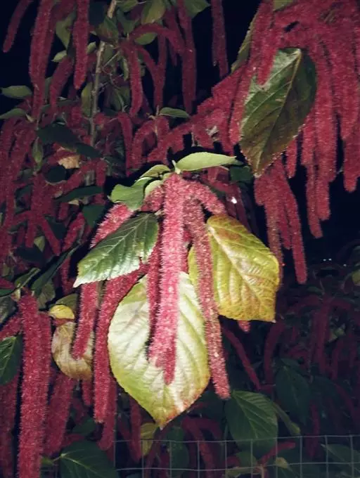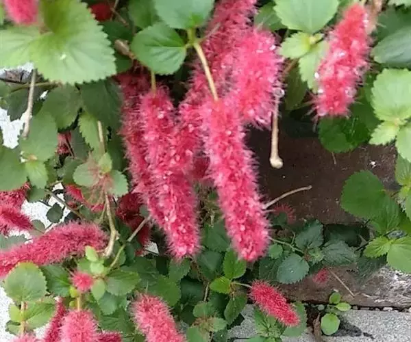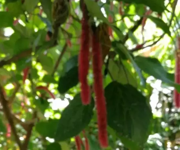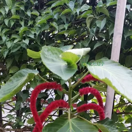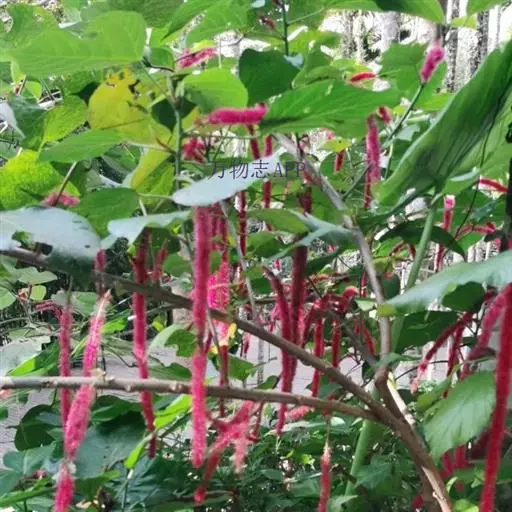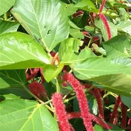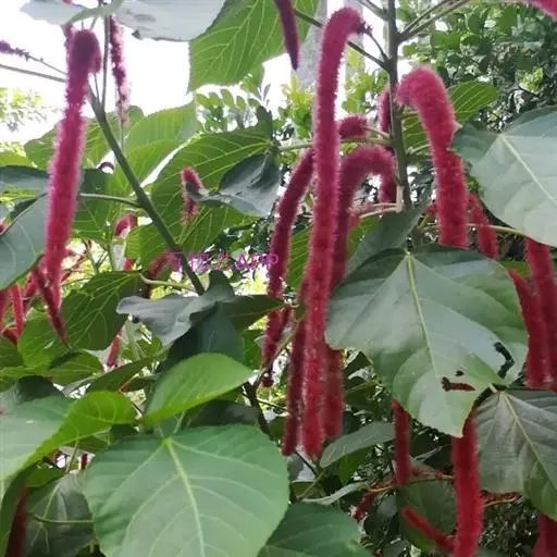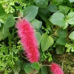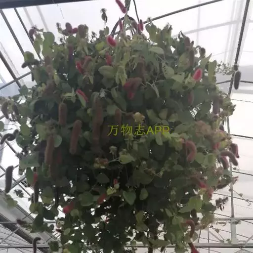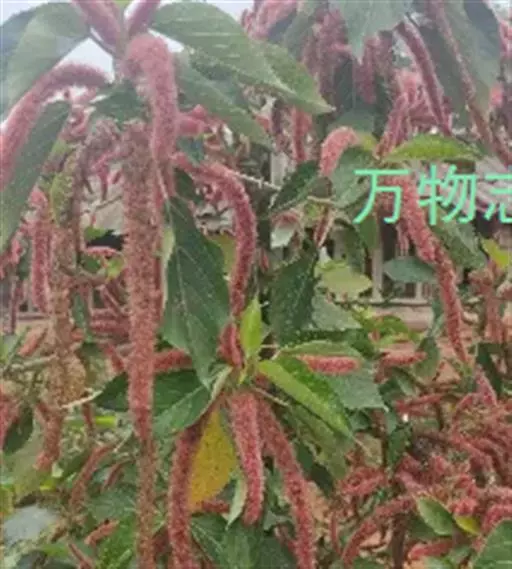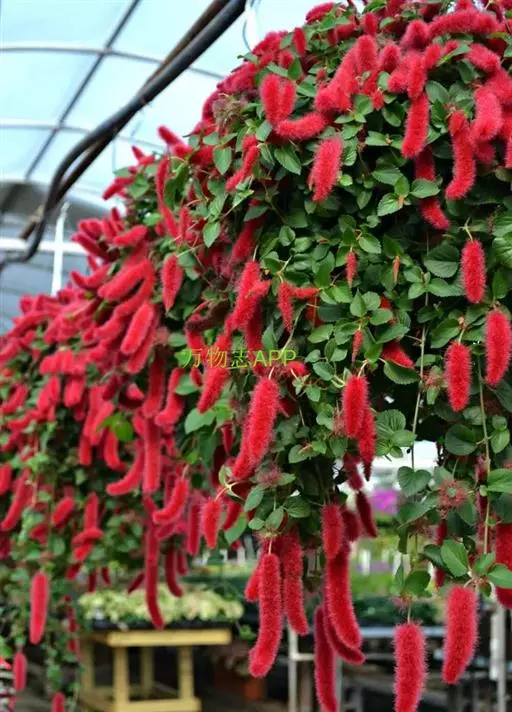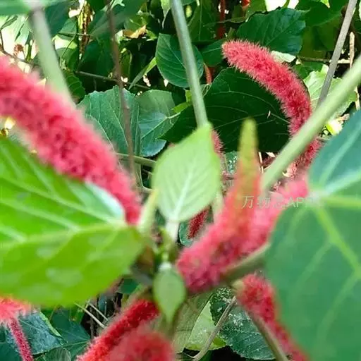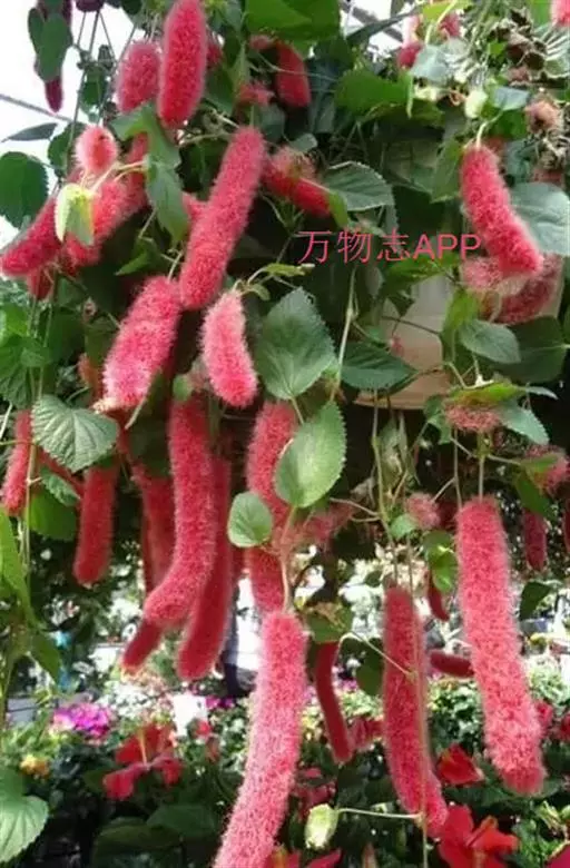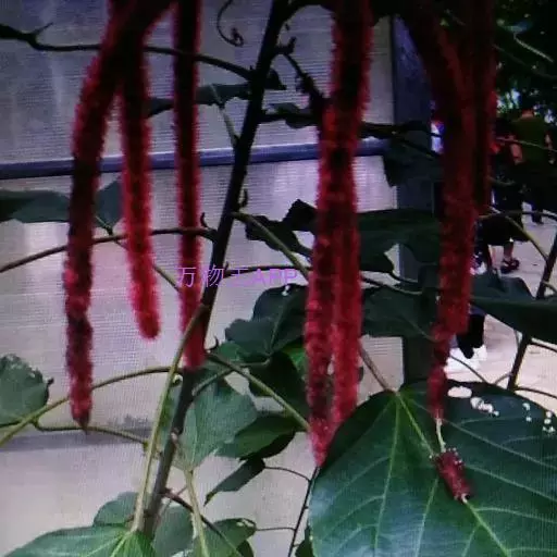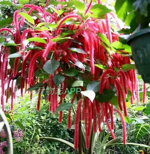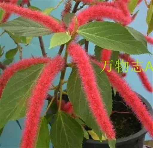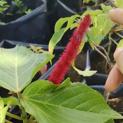 红穗铁苋菜(学名:Acalypha hispida Burm. F.):为大戟科、铁苋菜属植物,灌木,高0.5-3米。嫩枝被灰色短绒毛,毛逐渐脱落,小枝无毛。 花序色泽鲜艳,葇荑花序下垂,如狐狸尾状,雌花近卵形,长约0.8毫米,顶端急尖,具短毛;子房近球形,密生灰黄色粗毛,花柱3枚,红色或紫红色;花期2-11月。