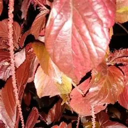 狗尾红的叶是纸质的,呈现单叶互生式,其形状主要是阔卵形的或着是卵形的,顶端部位是渐尖形的,在基部呈现阔楔形状或者是圆钝形状;在叶子上面没有毛,边缘处有粗锯齿;整体是亮绿色。