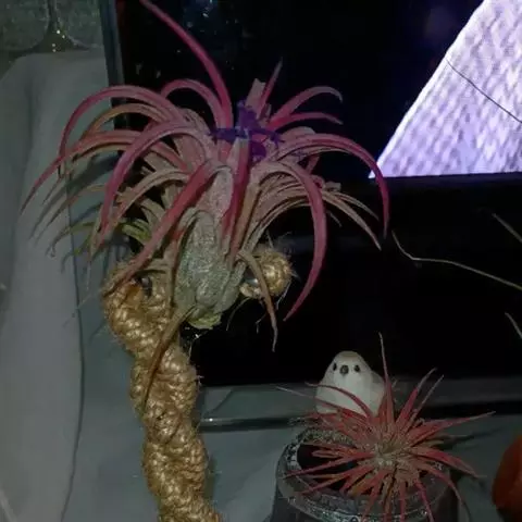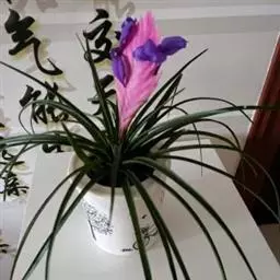 紫花凤梨,是凤梨科铁兰属的多年生草本植物。株高不及30厘米;叶片拱状线形,叶丛族生于短缩茎上,…