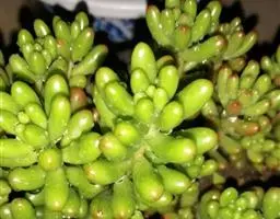 玉米石是景天科、景天属植物。多年生草本多浆植物。植株低矮丛生,多分枝。叶膨大成圆筒形、卵形或近小球形,…