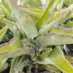 为多年生草本植物。喜阳光充足, 棒叶落地生根 但也耐半阴,喜干燥环境,要求排水良好的砂质壤土。