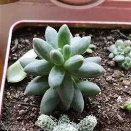 乙姬牡丹为景天科景天属多肉植物,有茎,叶互生,排列成莲座状,匙形,表面光洁,正面平坦,背面隆起,肉…