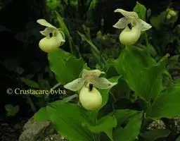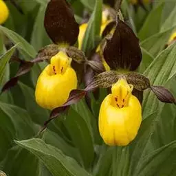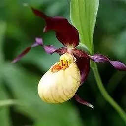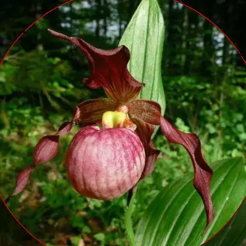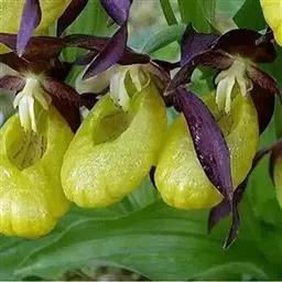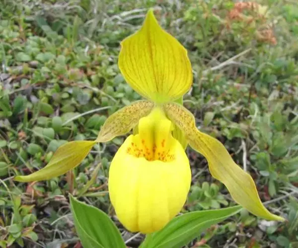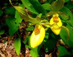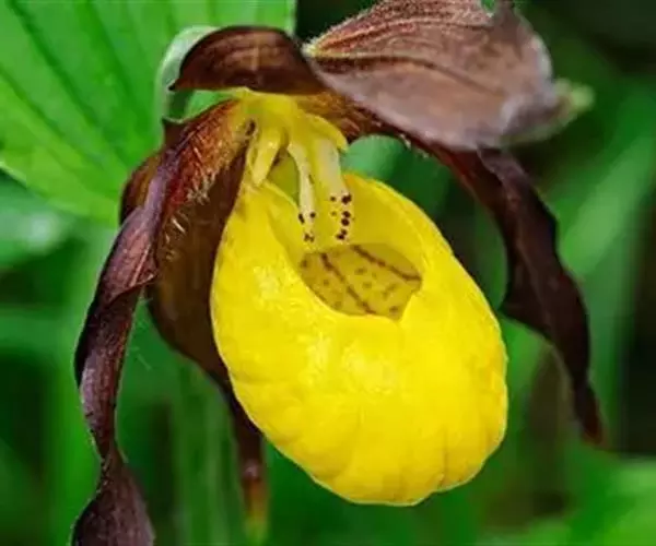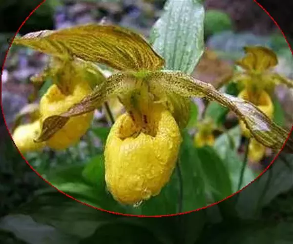 杓兰(学名:Cypripedium calceolus L.):植株高20-45厘米,具较粗壮的根状茎。茎直立,被腺毛,基部具数枚鞘,近中部以上具3-4枚叶。叶片椭圆形或卵状椭圆形,较少卵状披针形。花序顶生,通常具1-2花;花具栗色或紫红色萼片和花瓣,但唇瓣黄色;花瓣线形或线状披针形,长3-5厘米,宽4-6毫米,扭转,内表面基部与背面脉上被短柔毛;唇瓣深囊状,椭圆形。花期6-7月。