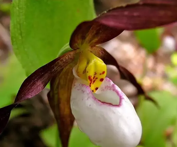 紫点杓兰是兰科杓兰属植物;根状茎细长,横走,茎直立,被短柔毛和腺毛枝顶端具叶,叶顶端具叶,…