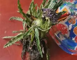 根倒圆锥状,深褐色。叶莲座状,星状排列,线状披针形,长3-19厘米,宽3-10毫米,无柄,中部以上长渐尖,向基部常卵状扩大,边缘全缘,两面同色,紫红色或近基部紫红色,或绿色,无毛。