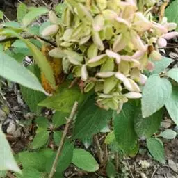 种子卵球形,淡黄色,长约1.5毫米,直径约1毫米,基部具狭翅状附属物。