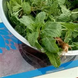 叶横切面:上表皮细胞长方形,下表皮细胞较小,外被角质层,有气孔及毛茸。栅栏组织1-2列细胞,海绵组织4-5列细胞。主脉维管束外韧型,上下表皮内方均有厚角组织,维管束上下两侧可见纤维。 茎横切面:呈四棱形。表皮细胞1列,外被角质层,可见毛茸。皮层外侧在四角棱处有4-6列厚角细胞;内皮层清晰。维管束外韧型,角隅处发达,韧皮部外侧有纤维2-4列,木质部连成环。髓部大。
