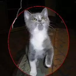 眼睛:中型杏眼形状,眼珠向上吊。颜色为深蓝色或湖蓝色,部分暹罗猫眼睛呈浅蓝色。从内眼角至眼梢的延长线,与耳尖构成V字形。眼微凸。