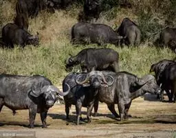 非洲野水牛:共有5个亚种。头体长2.1-3.4米,身高1-1.7米,体重300-900千克。胸膛宽…