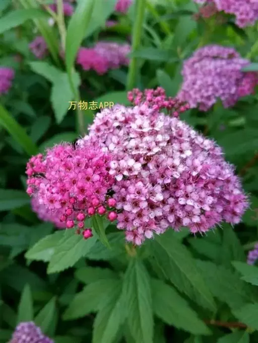 粉花绣线菊(学名:Spiraea japonica L. f.),别名蚂蟥梢、火烧尖、日本绣线菊,蔷薇科、绣线菊属直立灌木,高可达1.5米;枝条开展细长,圆柱形,冬芽卵形,叶片卵形至卵状椭圆形,上面暗绿色,下面色浅或有白霜,通常沿叶脉有短柔毛;复伞房花序,花朵密集,密被短柔毛;苞片披针形至线状披针形,萼筒钟状,萼片三角形,花瓣卵形至圆形,粉红色;花盘圆环形,蓇葖果半开张,花柱顶生,6-7月开花,8-9月结果。有时有2次开花。