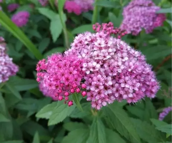 可作花坛、花境,或植于草坪及园路角隅等处构成夏日佳景,亦可作基础种植。粉花绣线菊花色妖艳,甚为醒目,且花期正值少花的春末夏初,应大力推广应用。可成片配置于草坪、蹯边、花坛、花径,或丛植庭园一隅,亦可作绿篱,盛开时宛若锦带。庭院观赏、花篱、丛植、花境、可布置草坪及小路角隅等处,或种植于门庭两侧。